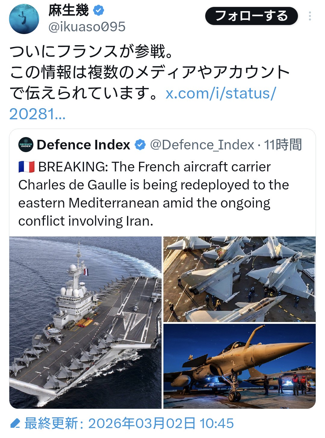 | … | 83無念Nameとしあき26/03/02(月)20:32:36No.1391168702+自衛隊初の実戦参加か |