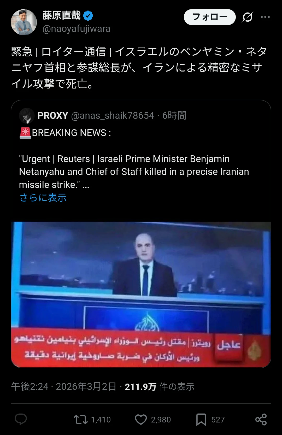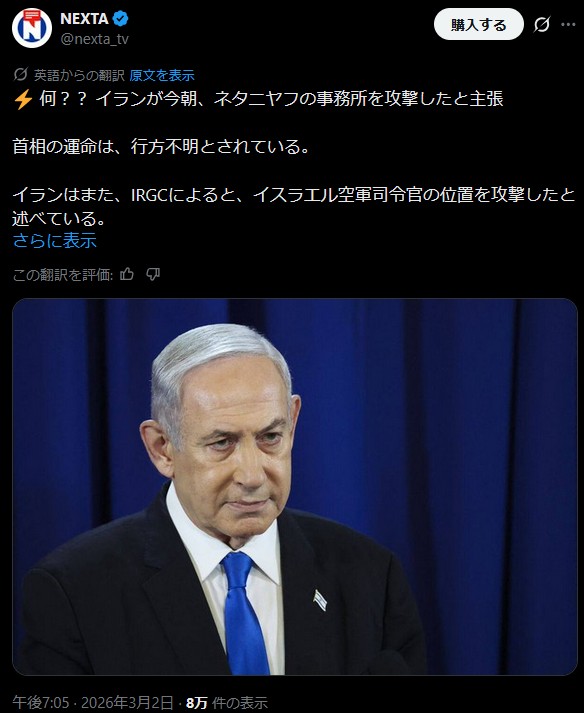 | … | 40無念Nameとしあき26/03/02(月)20:20:56No.1391164811+ネタニヤフもやられたの |