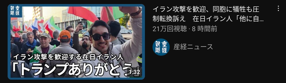 | … | 3無念Nameとしあき26/03/02(月)20:07:34No.1391160637そうだねx5イランが無差別にいらん攻撃してるんすよー |