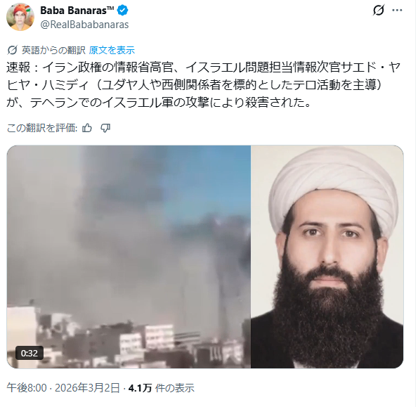 | … | 87無念Nameとしあき26/03/02(月)20:33:00No.1391168854+今回の件は多分イスラエル主導だからイランの内部情報はモサドが握ってんだろう |