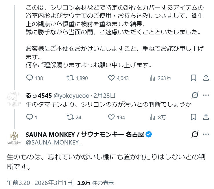 | … | 9無念Nameとしあき26/03/02(月)21:05:57No.1391179503そうだねx3サウナ店が次々と禁止声明出してて笑う |