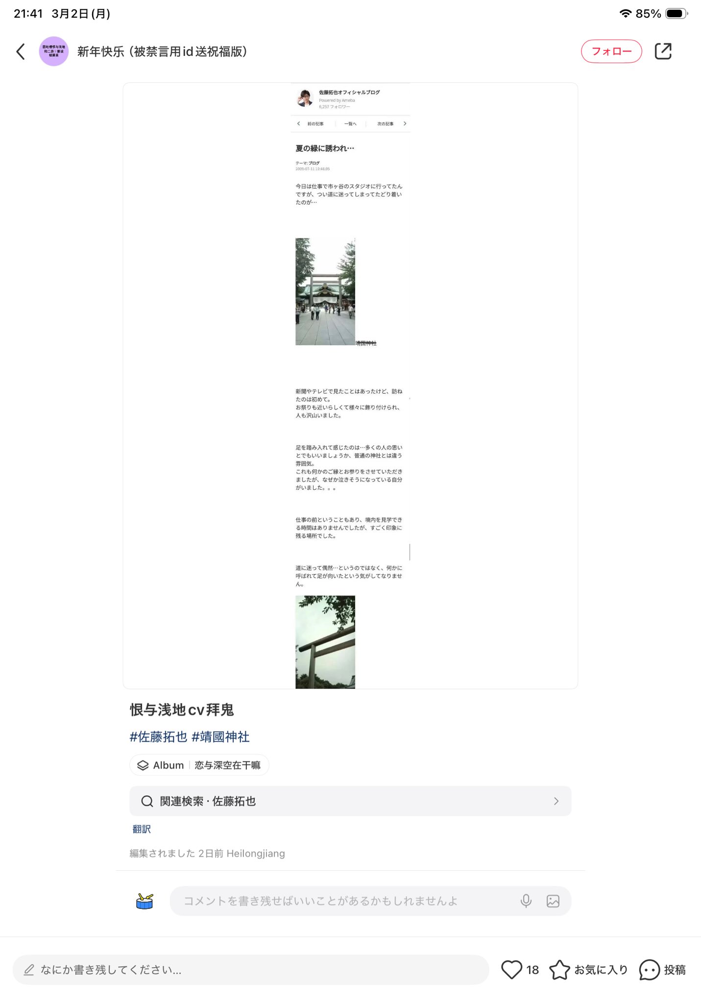 | … | 46無念Nameとしあき26/03/02(月)23:32:11No.1391220414そうだねx7>SNSで靖国行きましたとポストでもしたの? |