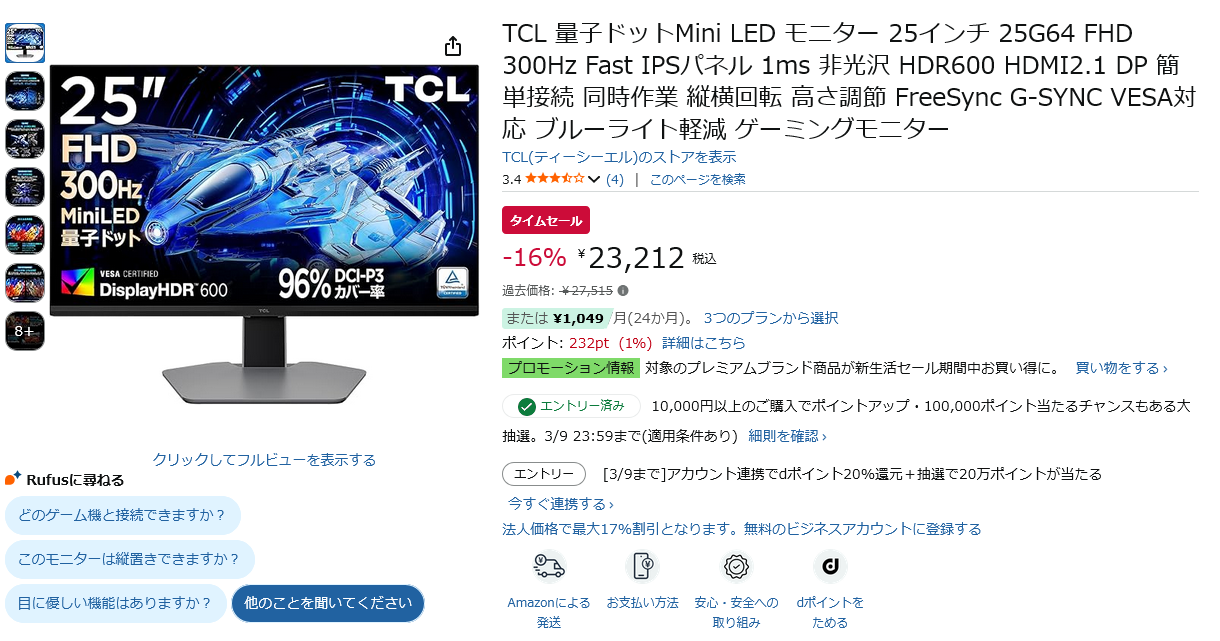 | … | 74無念Nameとしあき26/03/03(火)18:45:33No.1391363597+>TitanArmy 4K MiniLED 5.5万円 |