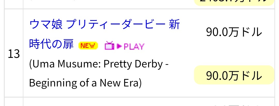 | … | 23無念Nameとしあき26/03/03(火)17:29:10No.1391348076そうだねx5 1772526550894.jpg-(73885 B) アメリカで公開したウマ娘が3日で1億超えてて草 |
