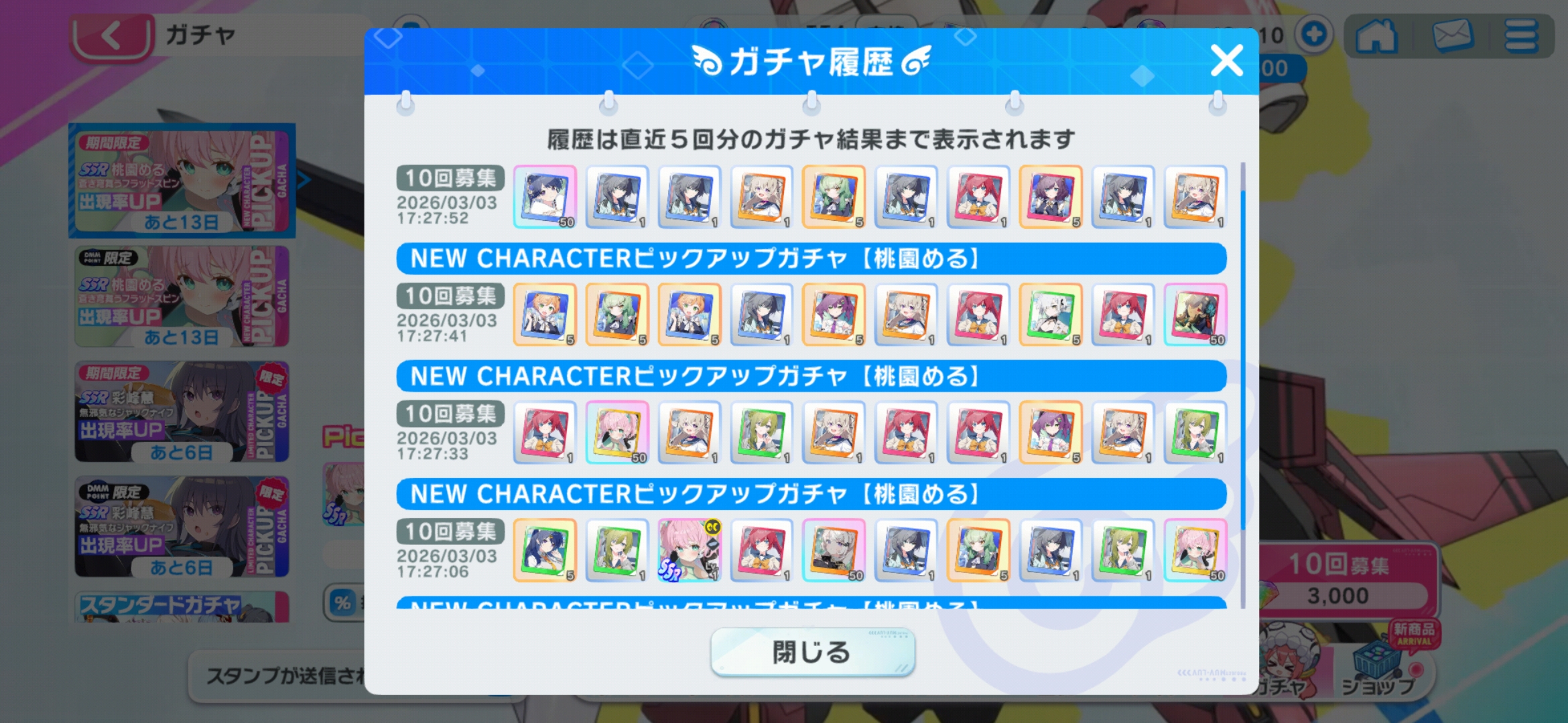 | … | 45無念Nameとしあき26/03/03(火)18:02:55 ID:HCw7CMPwNo.1391354565+>連携してうっきうきでSSRチケ使ったらLR5なってるキャラ被って真顔になったぽよ |