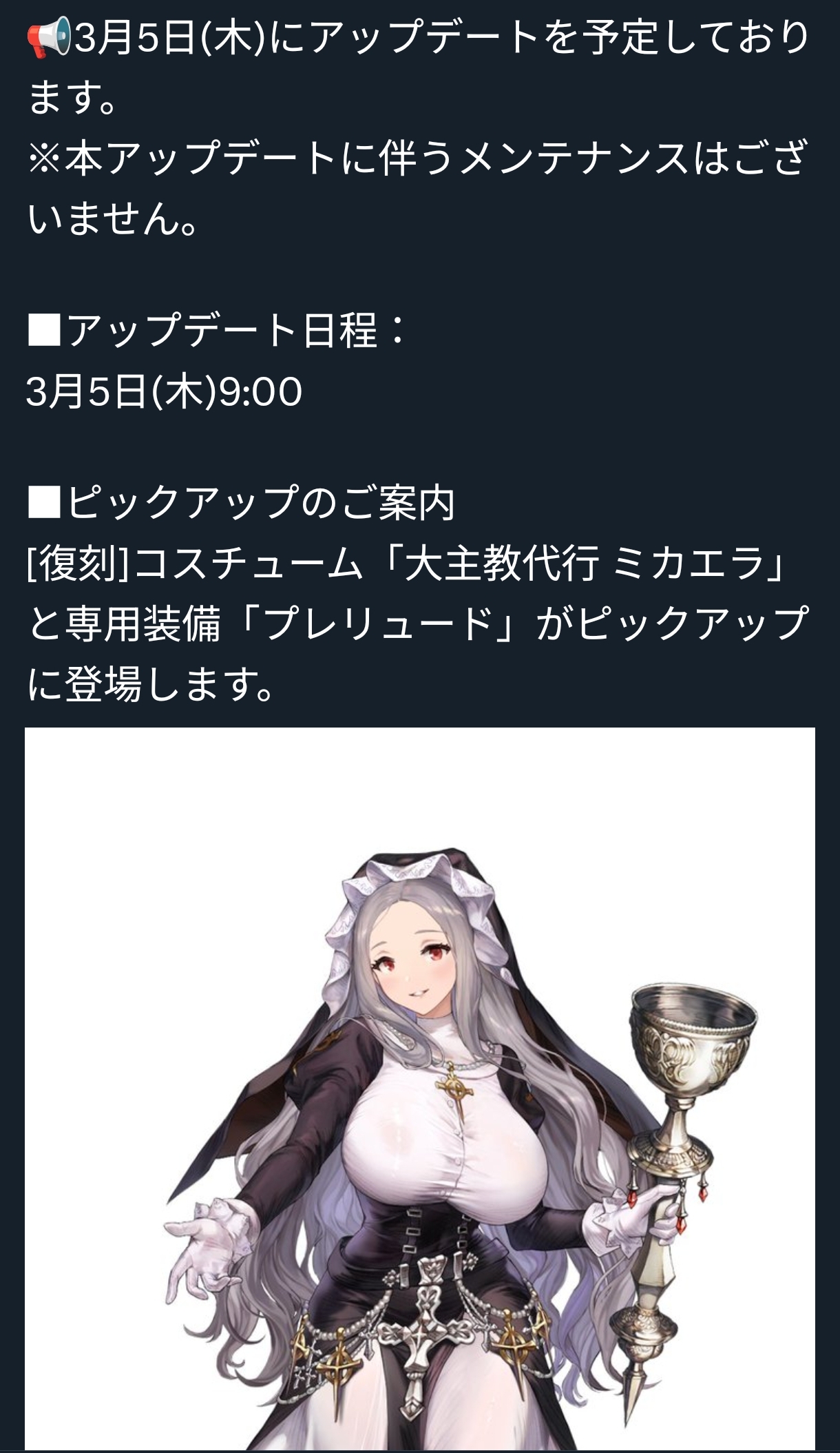 | … | 39無念Nameとしあき26/03/04(水)21:10:47No.1391611801+ 1772626247020.jpg-(632508 B) 明日の復刻枠更新はミカエラか |