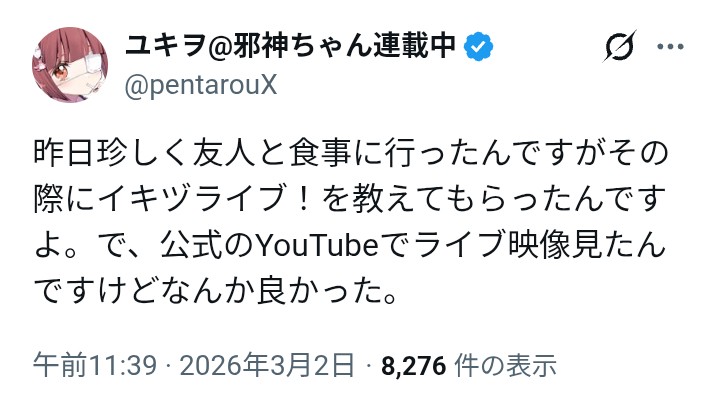 | … | 42無念Nameとしあき26/03/04(水)20:02:45No.1391592945+イキヅライブってイキリアクマみたい |