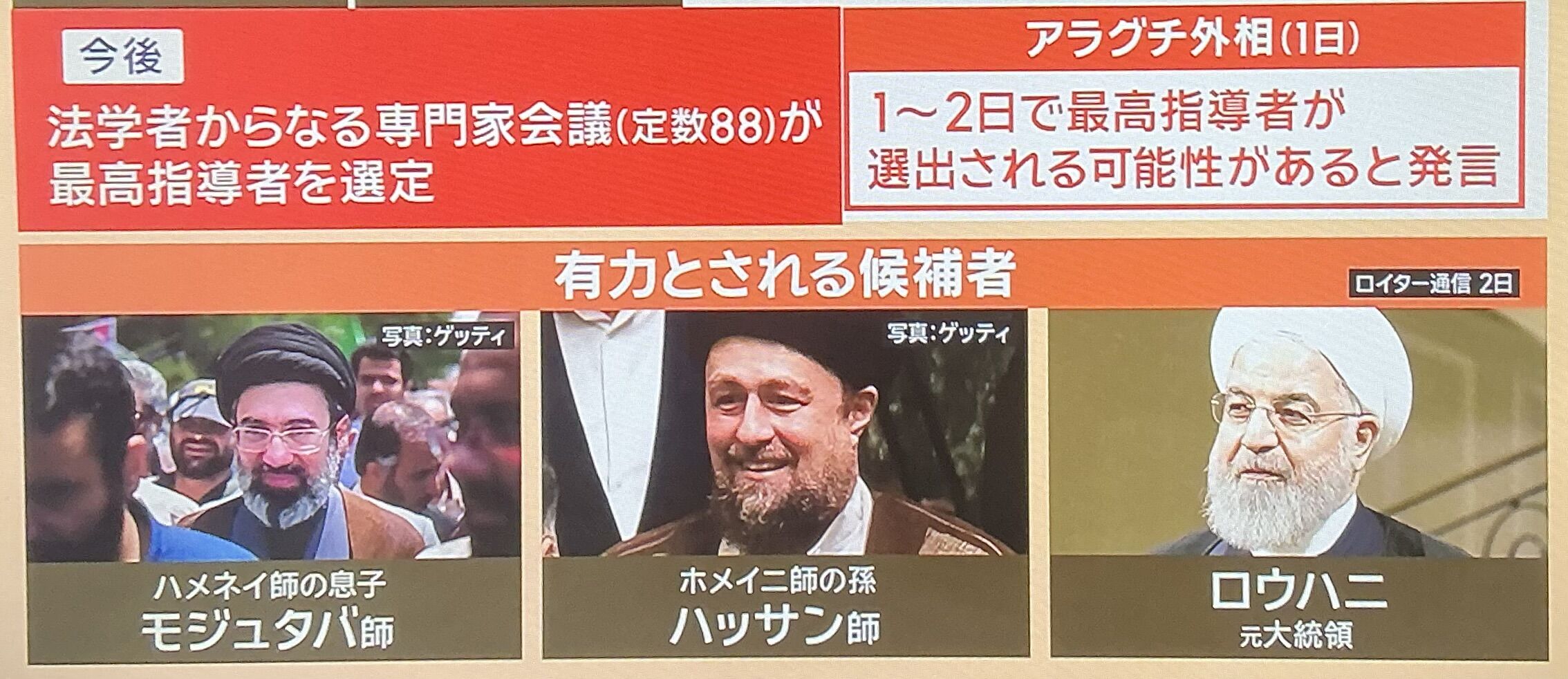 | … | 5無念Nameとしあき26/03/04(水)19:57:26No.1391591482そうだねx1この記事に引用された湾岸諸国の外務省関係者は、「ライシ大統領の死により、次の大統領候補はモジュタバ・ハメネイ師に忠実な人物となるだろう。アリ・ハメネイ師が突然死するような予期せぬ事態が起こらない限り、政権はライシ体制と同様の方法で運営され続けるだろう」と述べている。 |