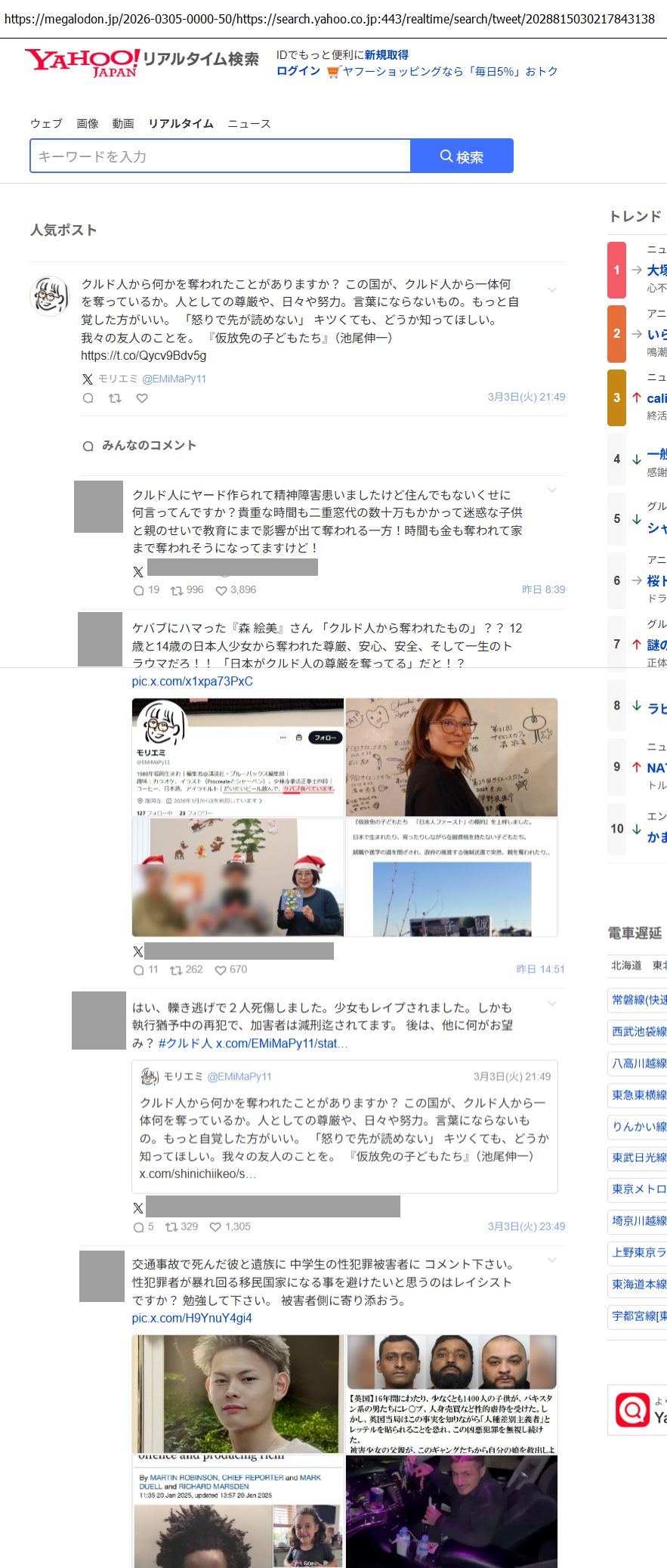 | … | 13無念Nameとしあき26/03/04(水)23:06:43No.1391643462そうだねx39>息子をクルド人に殺された人がポストを見てブチぎれ |