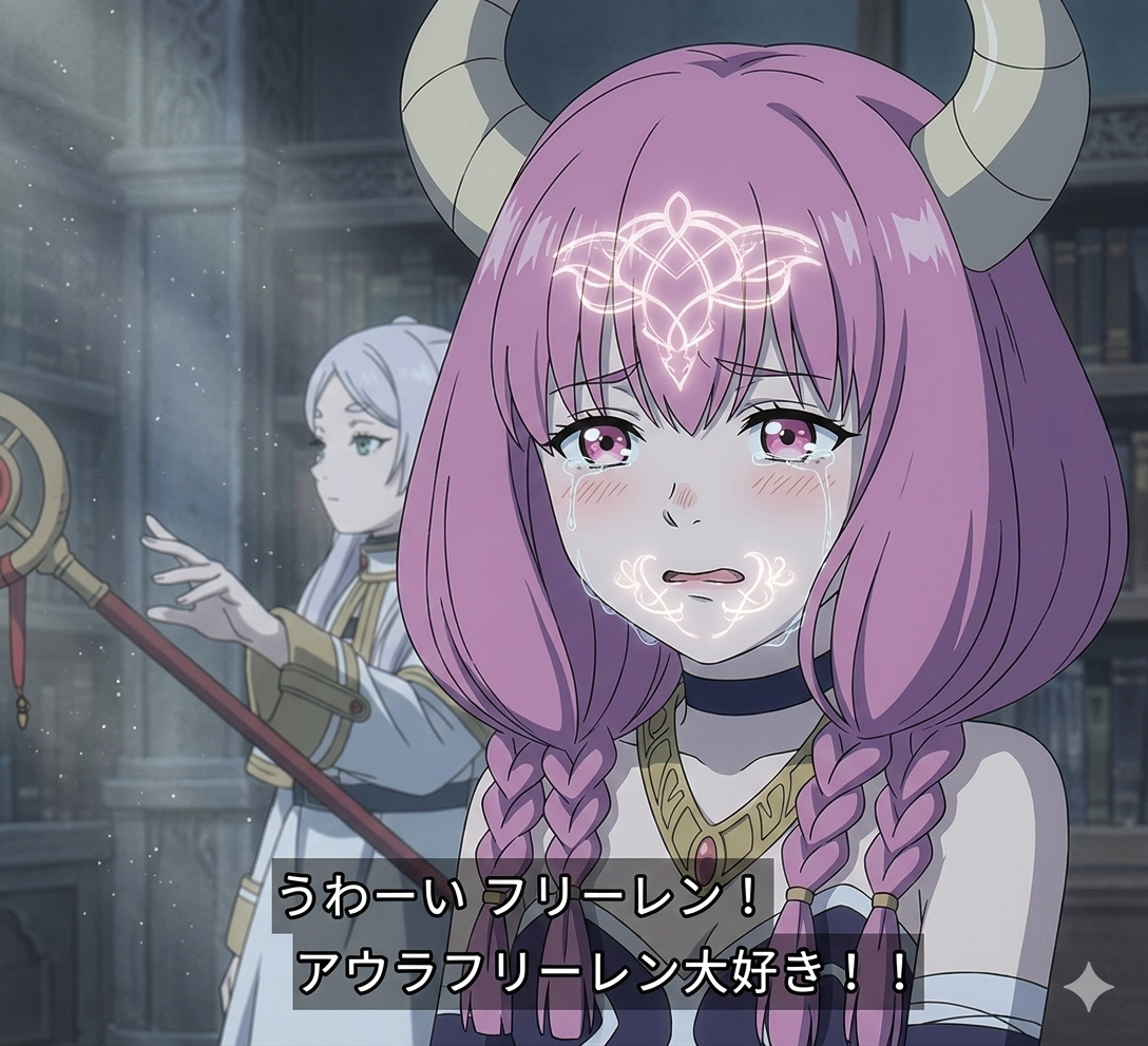 | … | 77無念Nameとしあき26/03/05(木)11:20:23No.1391710696そうだねx8 1772677223646.png-(1328375 B) >>うわーいフリーレン!アウラフリーレン大好き!! |