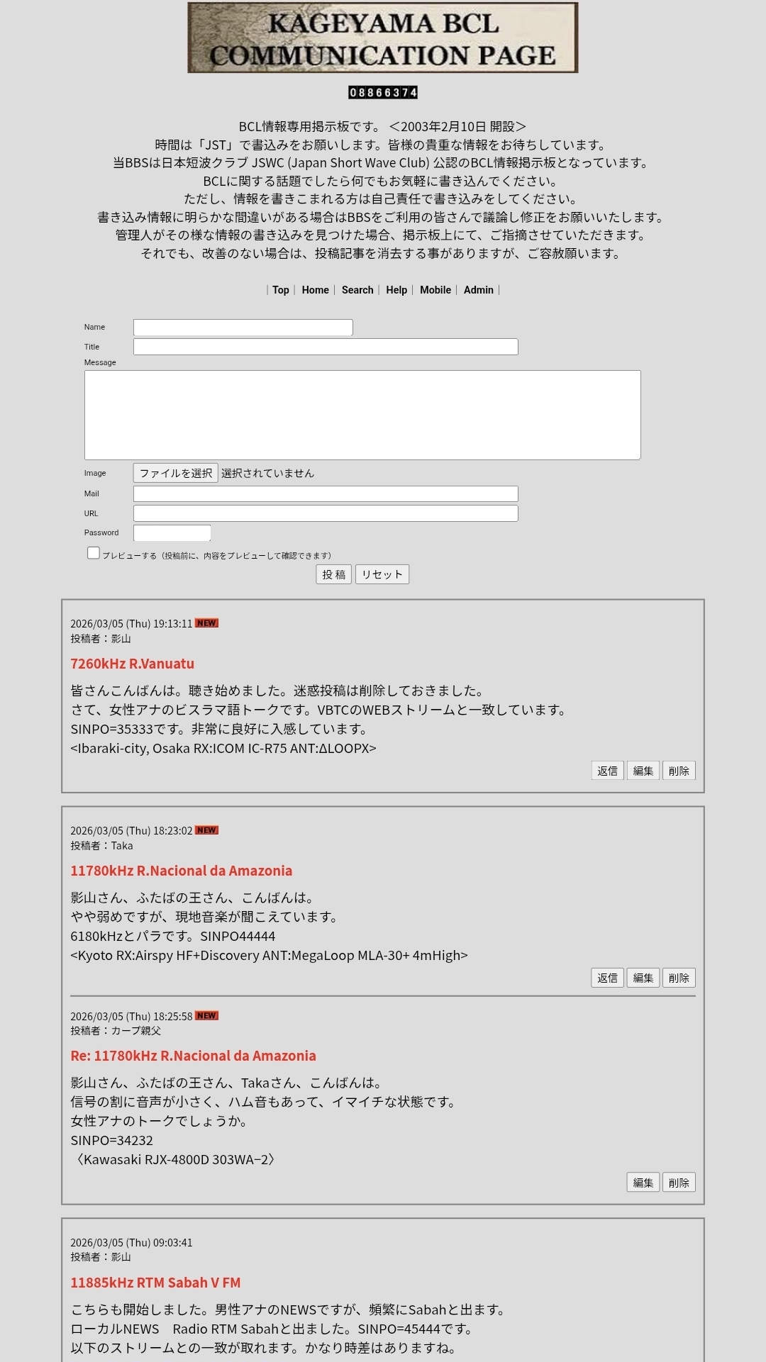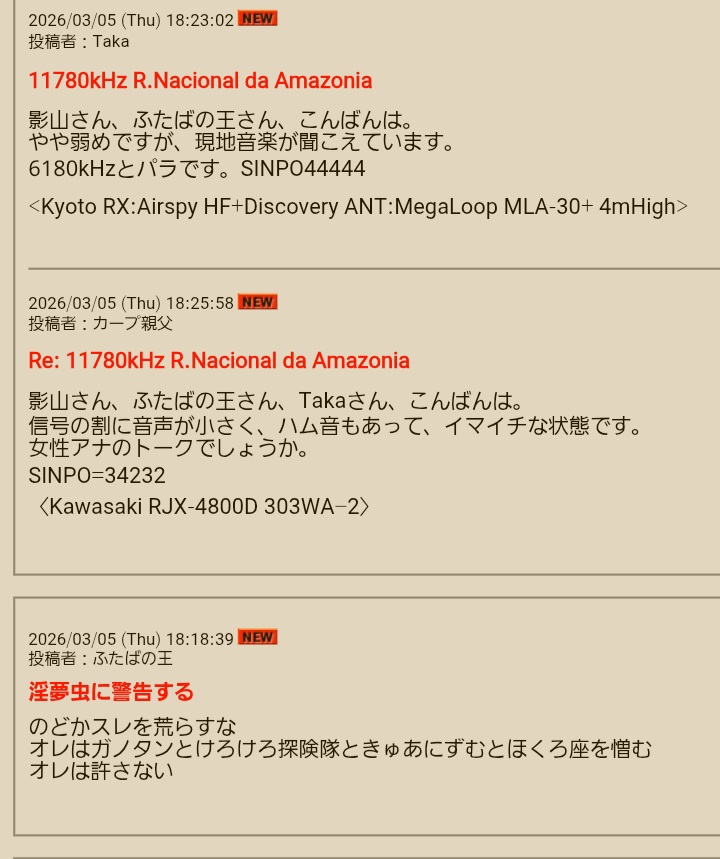 | … | 228無念Nameとしあき26/03/05(木)20:39:17No.1391816711そうだねx4>BCL掲示板にアクセス出来なくなってますね… |
