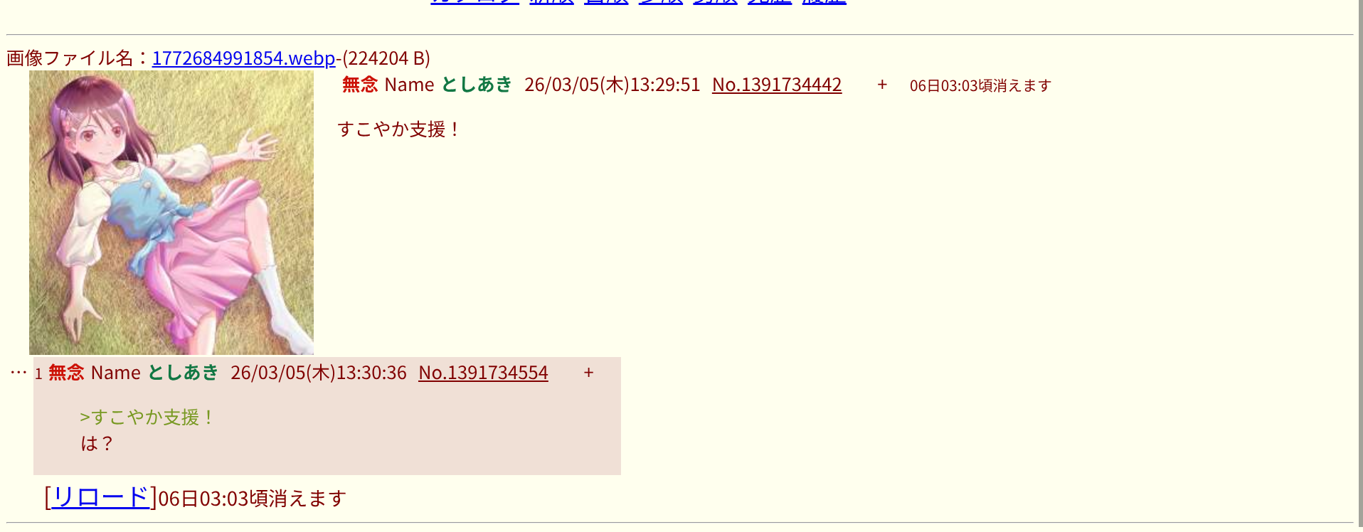 | … | 14無念Nameとしあき26/03/05(木)18:58:03No.1391789082そうだねx2おはのどか^~ |