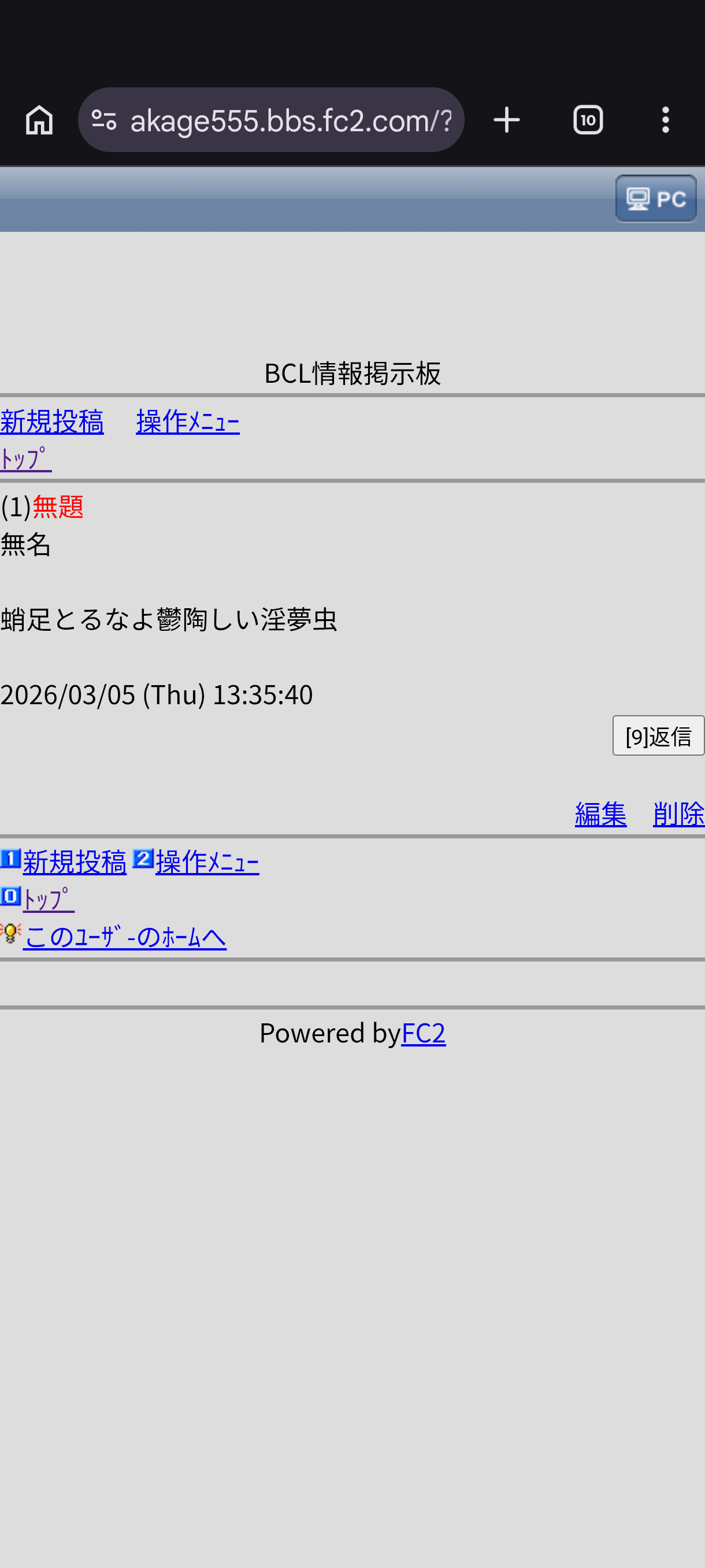 | … | 233無念Nameとしあき26/03/05(木)20:40:14No.1391816985そうだねx10>BCL掲示板にアクセス出来なくなってますね… |