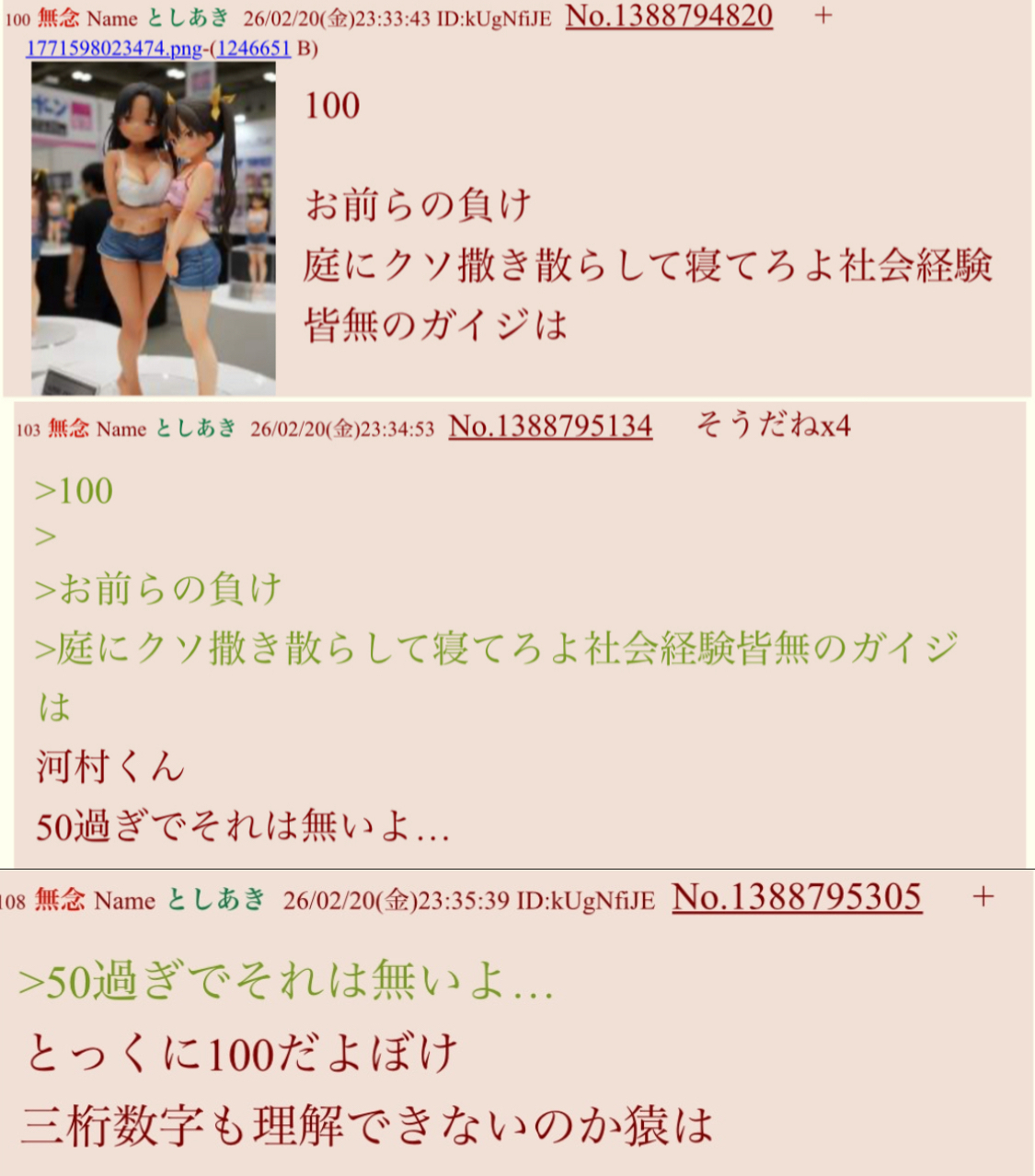 | … | 91無念Nameとしあき26/03/05(木)19:58:09 ID:3vDqoVosNo.1391804825そうだねx3河村はsage爺とは別個体で他のスレで暴れてるキチガイだゾ |