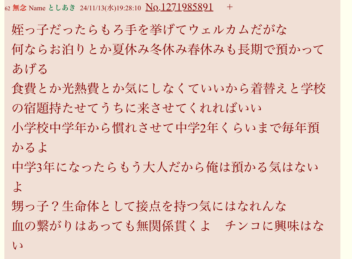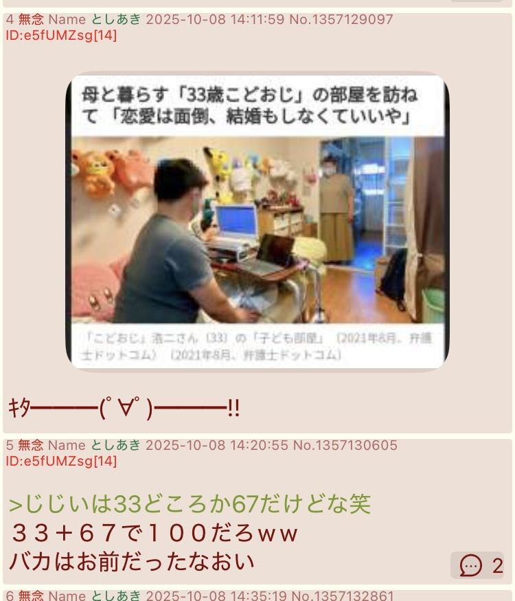 | … | 155無念Nameとしあき26/03/05(木)20:21:10No.1391811394そうだねx6 1772709670196.jpg-(620307 B) >sage爺の家族構成は知らないが甥は実在するんだろうなと思う |