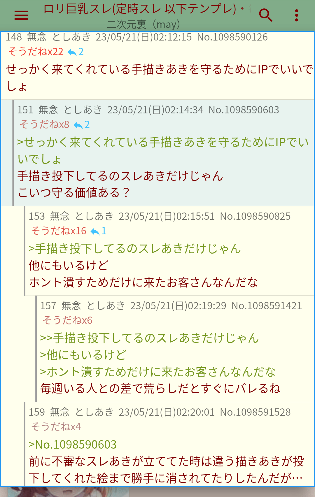 | … | 160無念Nameとしあき26/03/05(木)20:22:12No.1391811665そうだねx5おはのどかスレは荒らしの総本山 |