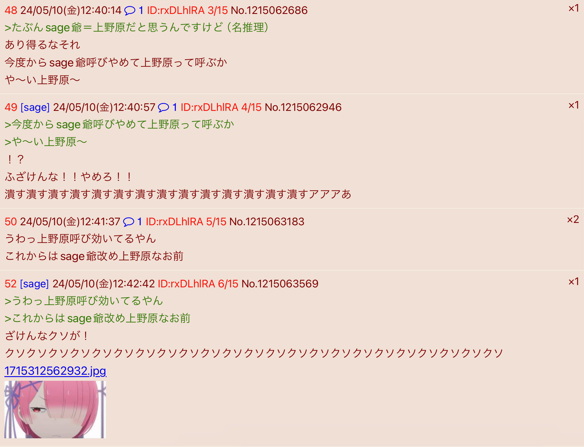 | … | 192無念Nameとしあき26/03/05(木)20:31:24No.1391814428そうだねx2>これ上野原って奴持ち上げとけば全自動でsage爺ブチギレそうで草 |