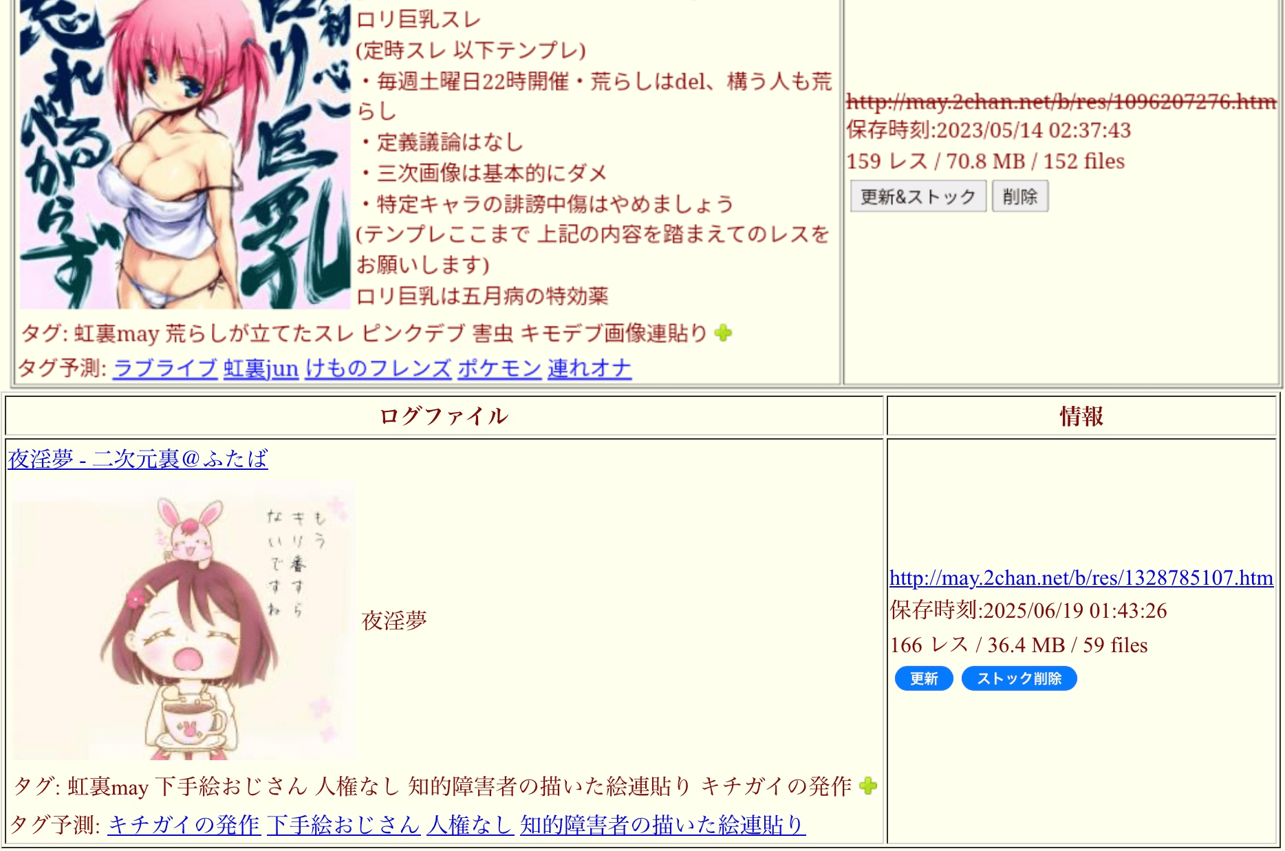 | … | 34無念Nameとしあき26/03/05(木)19:11:26No.1391792219そうだねx1>https://may.2chan.net/b/res/1391707259.htm |