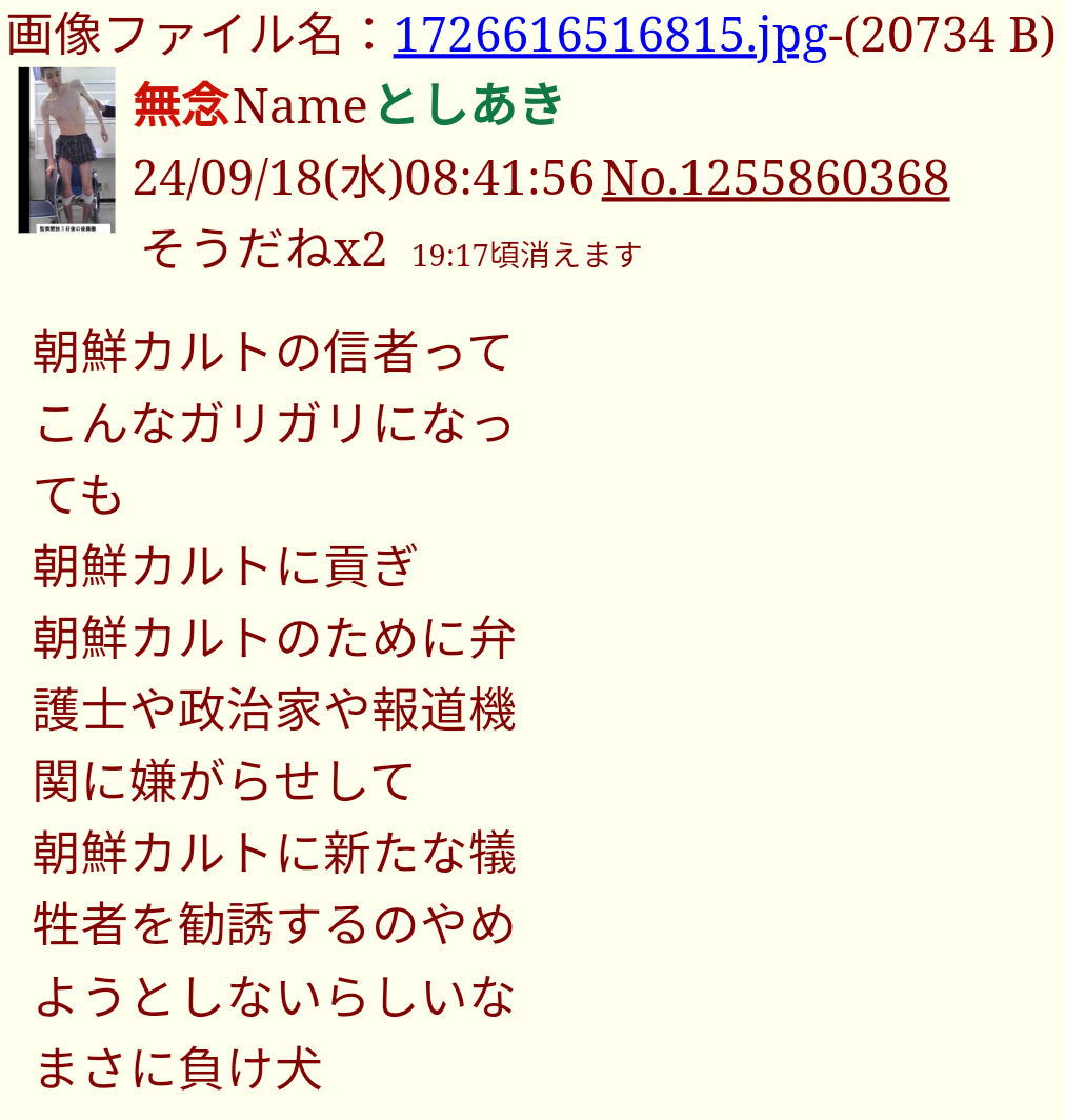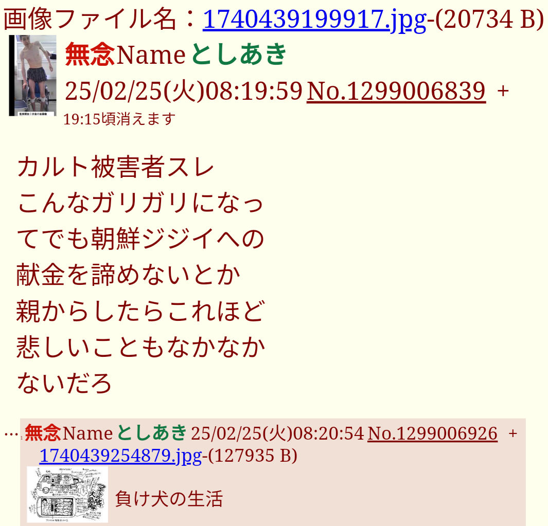 | … | 114無念Nameとしあき26/03/06(金)09:02:26No.1391905703+野田さんを応援してくれた統一教会を信じろ |