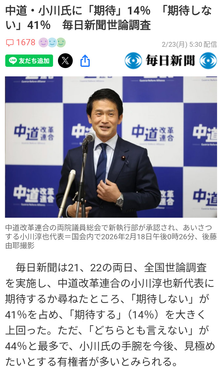 | … | 51無念Nameとしあき26/03/06(金)08:21:47No.1391901778そうだねx1 1772752907544.jpg-(87819 B) >自民には自分と違って真のリーダーシップがないから自然と支持率落ちるって小川は言ってる |