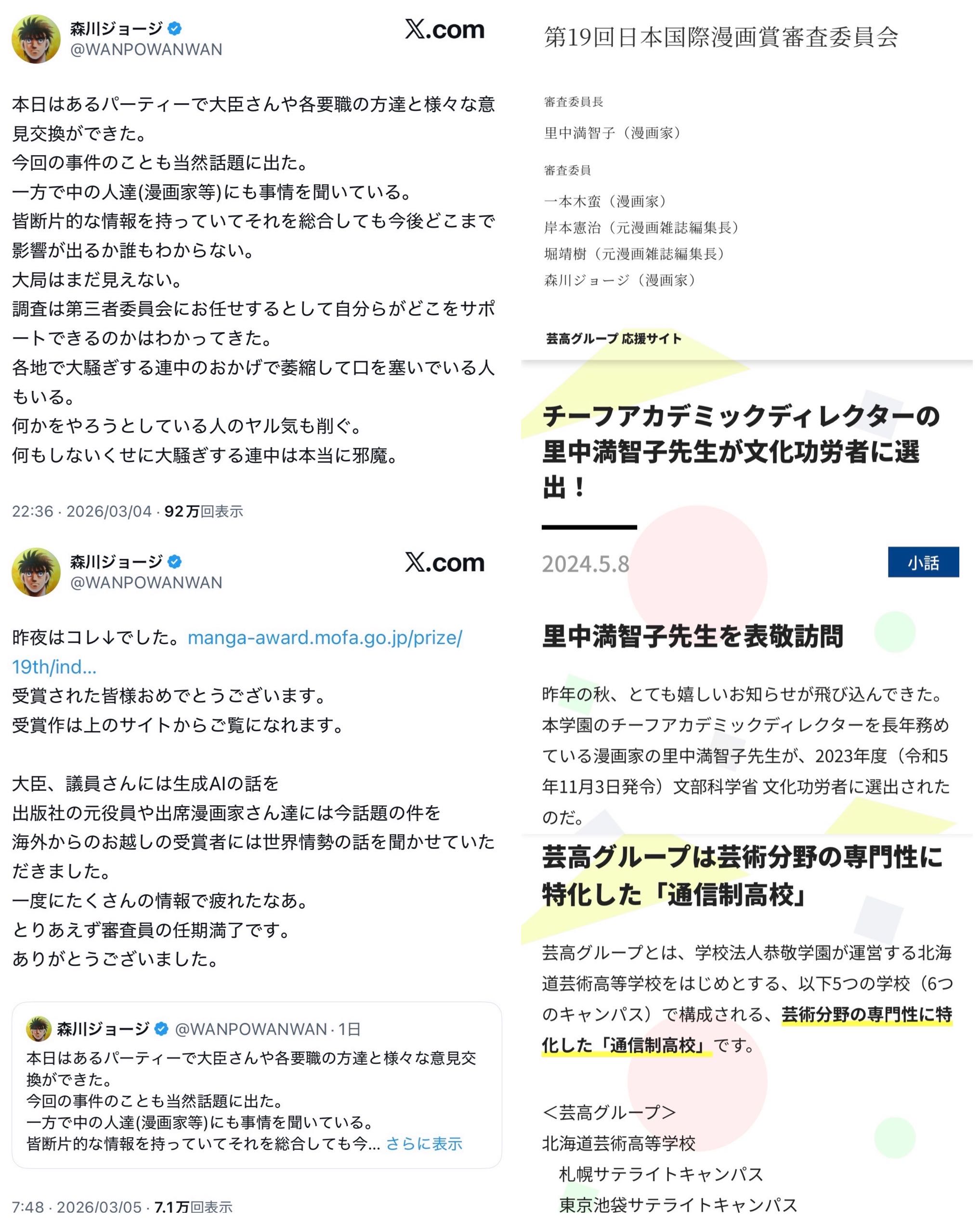 | … | 72無念Nameとしあき26/03/06(金)07:54:51No.1391899249+そろそろ大局が見えないとか言ってる場合じゃないんじゃないの日本漫画家協会さん |