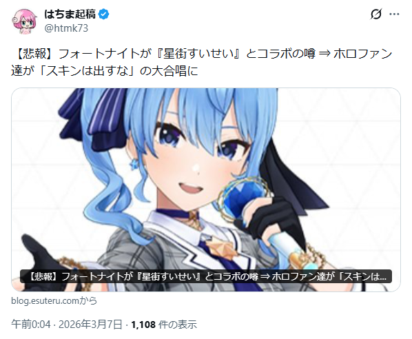 | … | 112無念Nameとしあき26/03/07(土)04:22:26No.1392111283そうだねx1>>推し観ずにホロ叩き |
