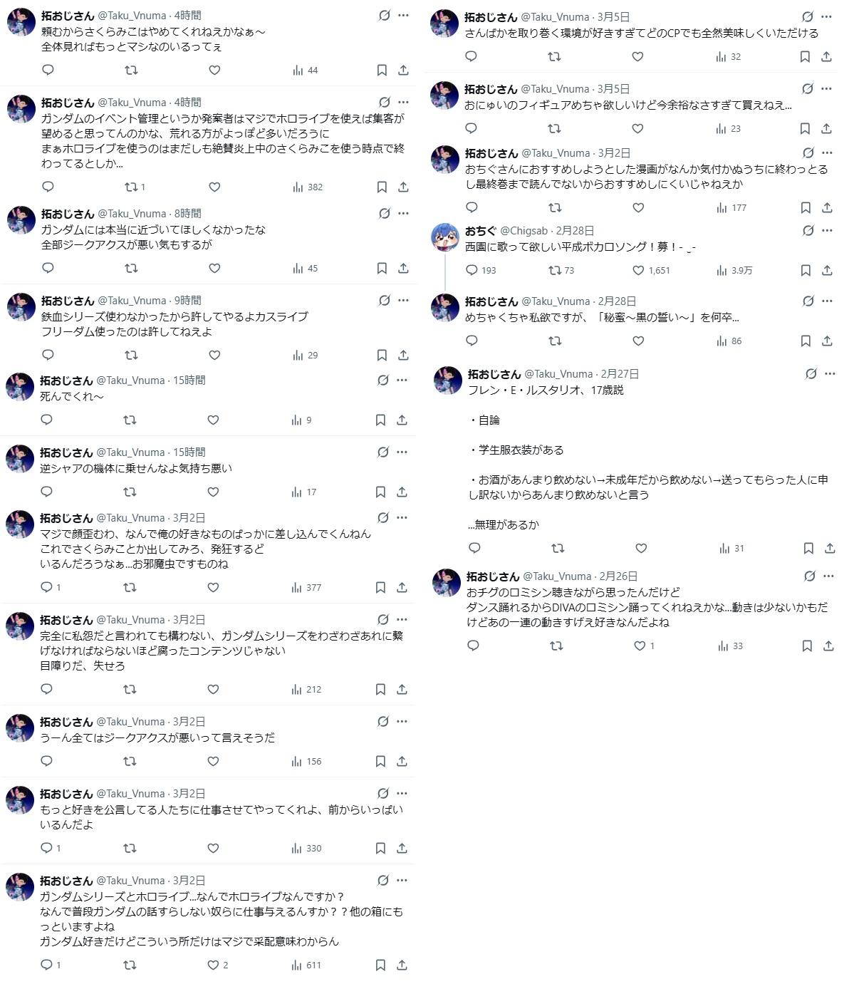 | … | 34無念Nameとしあき26/03/07(土)01:03:33No.1392097256そうだねx19>もうにじさんじじゃ絶対にホロライブには勝てないよ悔しかったらガンダムコラボやってみろよ |