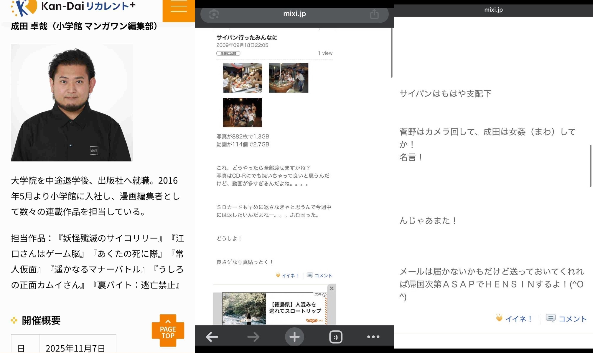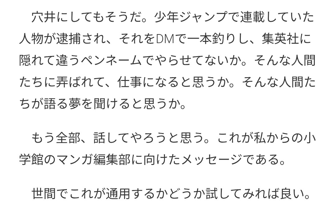 | … | 83無念Nameとしあき26/03/07(土)03:32:15No.1392109450+>あの記事書いた人は成田が小学館の名前出してるのフカシだと思って書いてると思うけどな |
