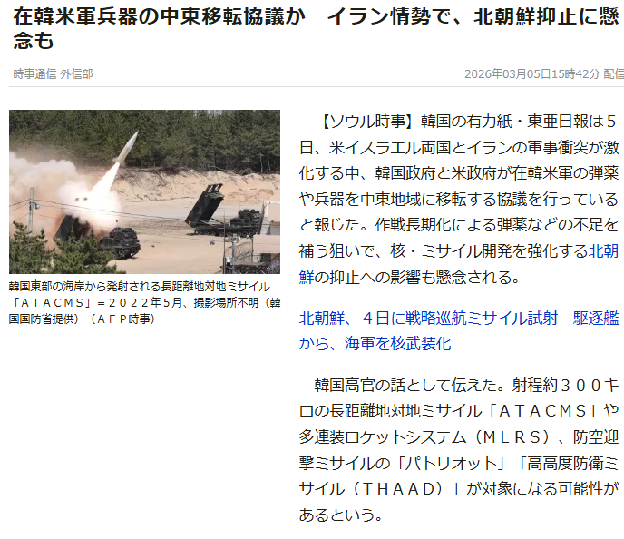 | … | 944無念Nameとしあき26/03/07(土)10:49:11No.1392147315+>>中東の兵器が足りないから極東から兵器移転させてこれから極東の抑止力をスカスカにさせていってくれそうなタイミングでやる理由が無い |