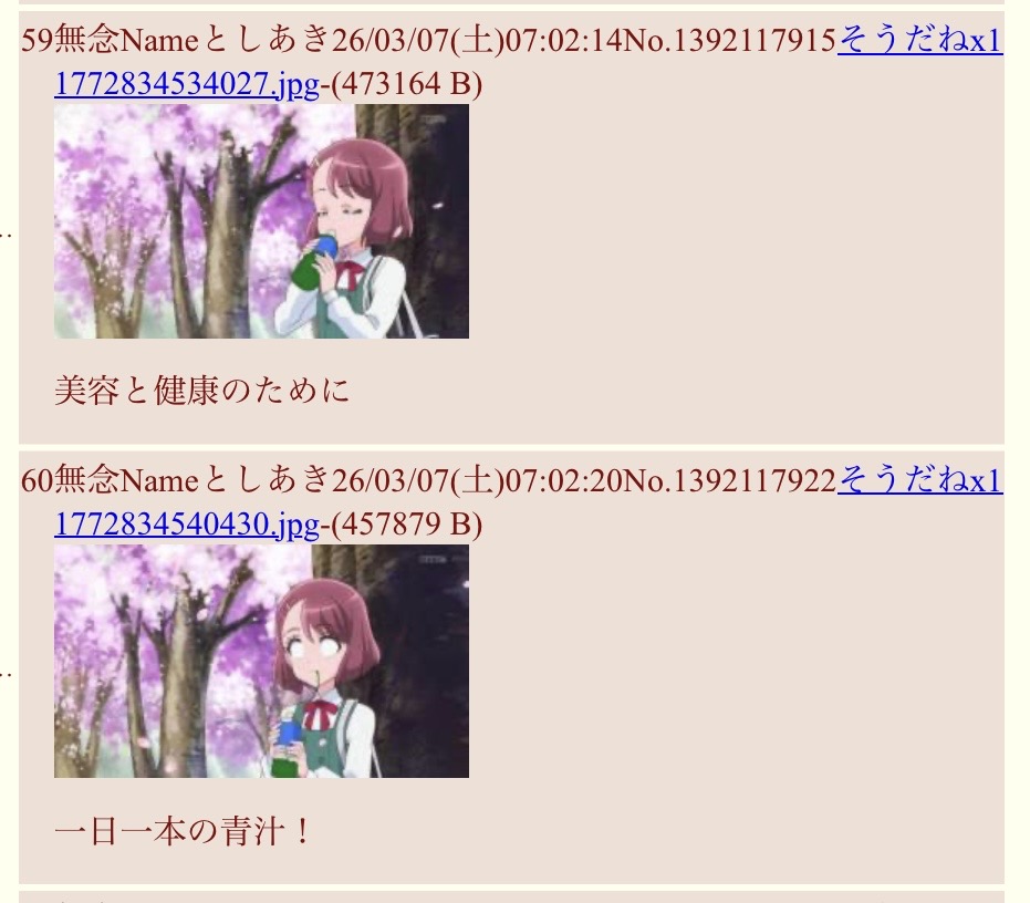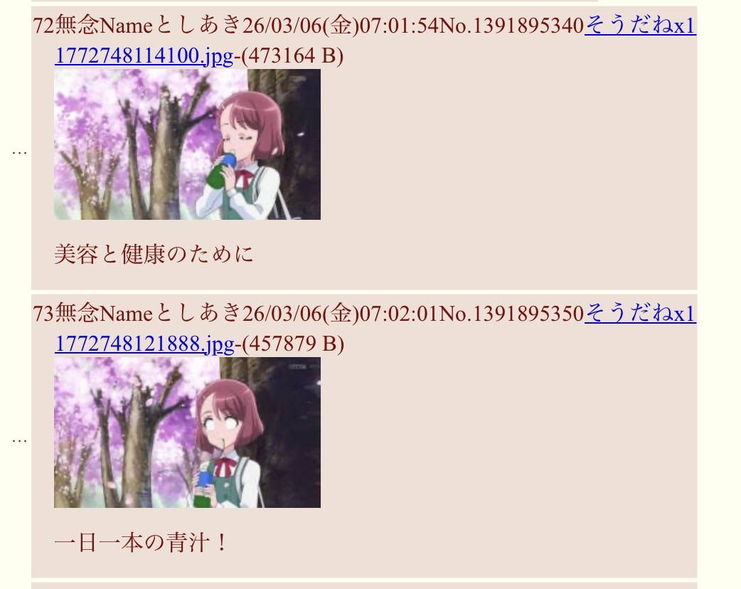 | … | 38無念Nameとしあき26/03/09(月)09:27:52No.1392654940そうだねx2一般としあきもいそうなんでURL貼らないですけど青汁で出てきます |