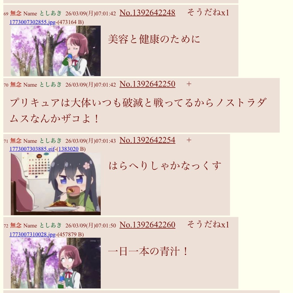 | … | 5無念Nameとしあき26/03/09(月)07:04:32No.1392642403そうだねx9>>おはよー |