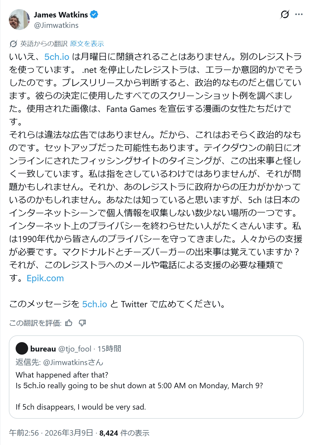 | … | 92無念Nameとしあき26/03/09(月)17:46:25No.1392727416+ひろゆき運営じゃなくなった時点で |
