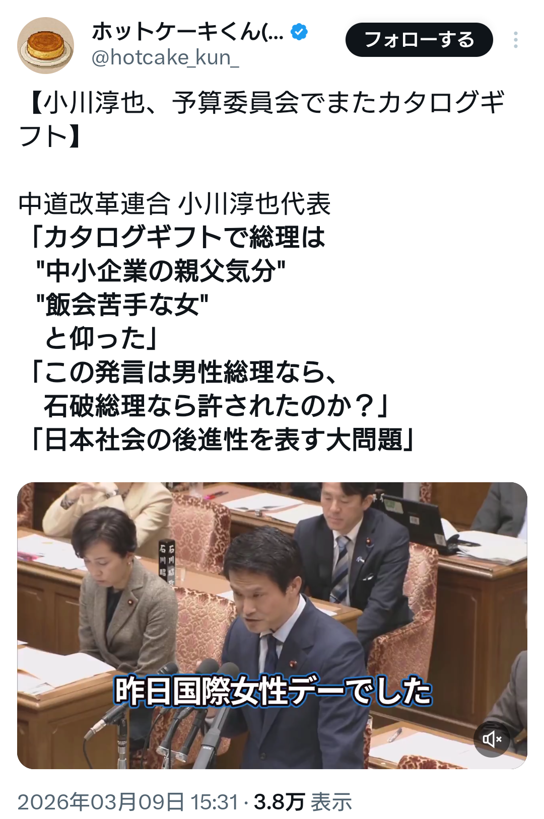 | … | 52無念Nameとしあき26/03/09(月)21:20:11No.1392780165+もちろん中道議員は誰も見てないんだろうな? |