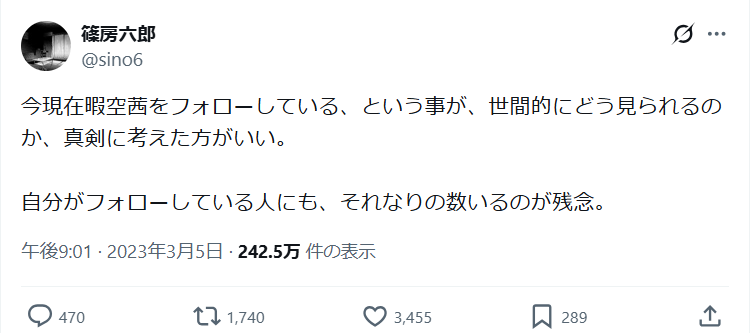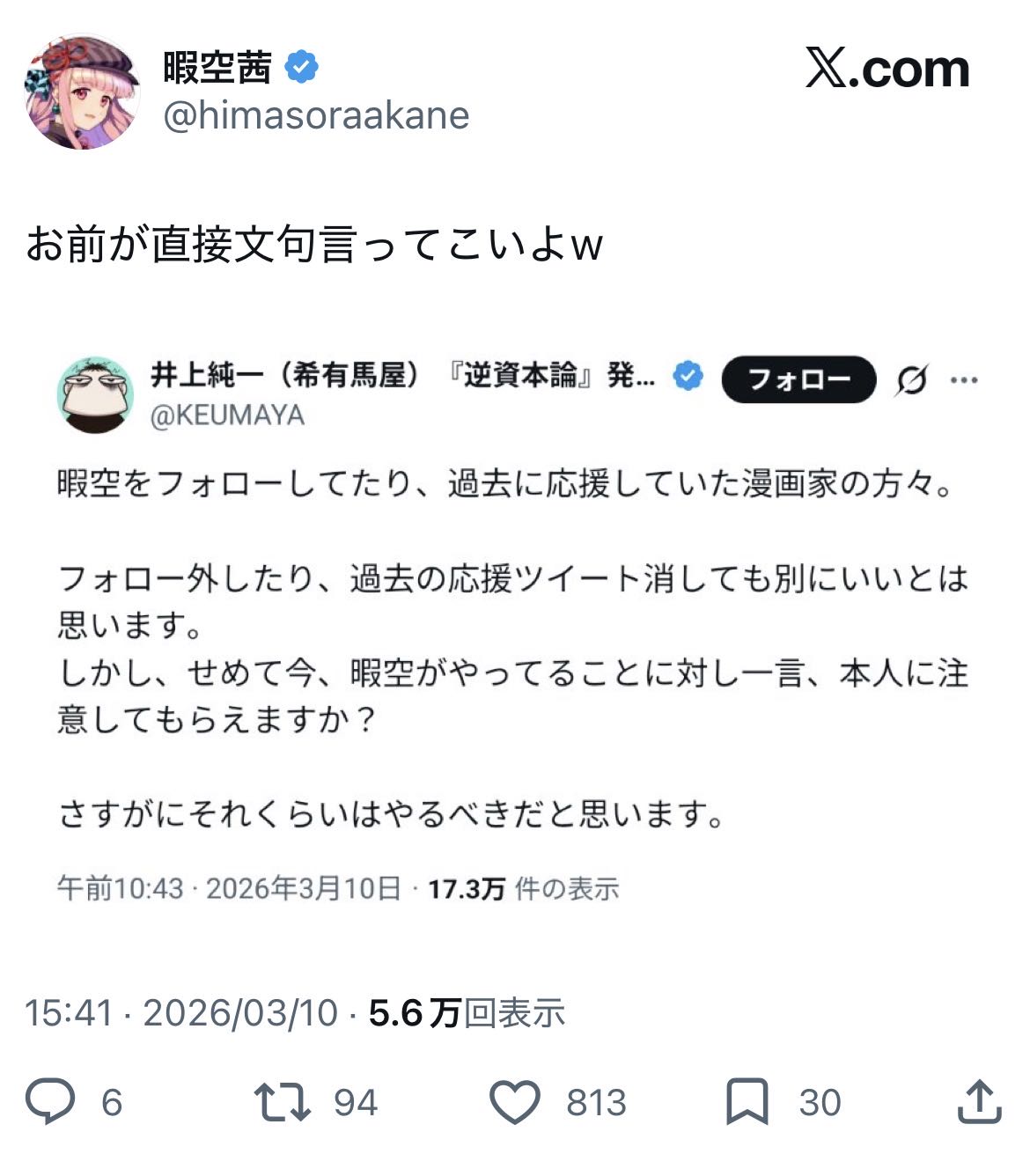 | … | 371無念Nameとしあき26/03/10(火)17:40:10No.1392937691そうだねx9ジンさんが暇空つついたから |