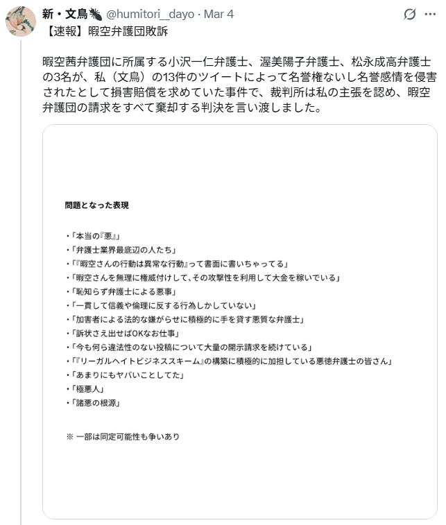 | … | 23無念Nameとしあき26/03/10(火)14:39:50No.1392910162そうだねx24暇空って裁判負け続けてるんだっけ |
