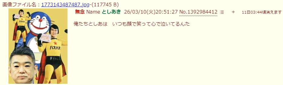 | … | 53無念Nameとしあき26/03/10(火)21:52:45No.1393002883+河村ヤッチャイ犯罪者 |