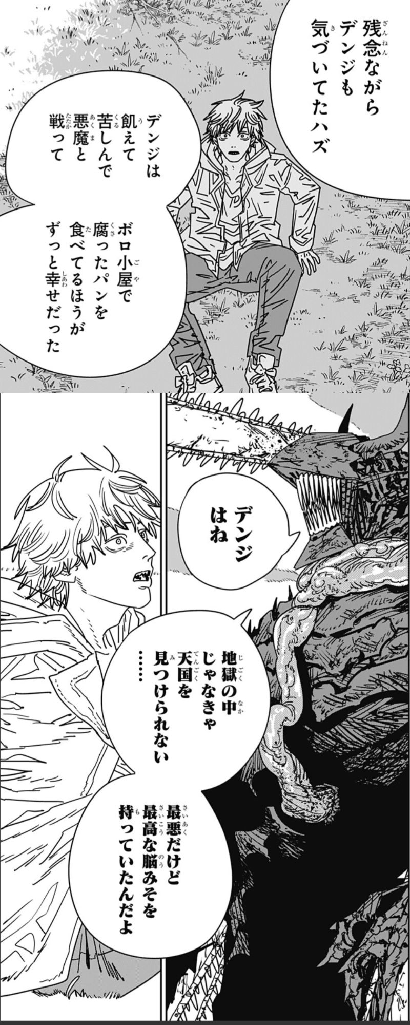 | … | 498無念Nameとしあき26/03/11(水)10:39:00No.1393079000+>(でもこれ腐ったパン未満の幸せなんだよな…)とか思いながら描いてたんかタツキ? |