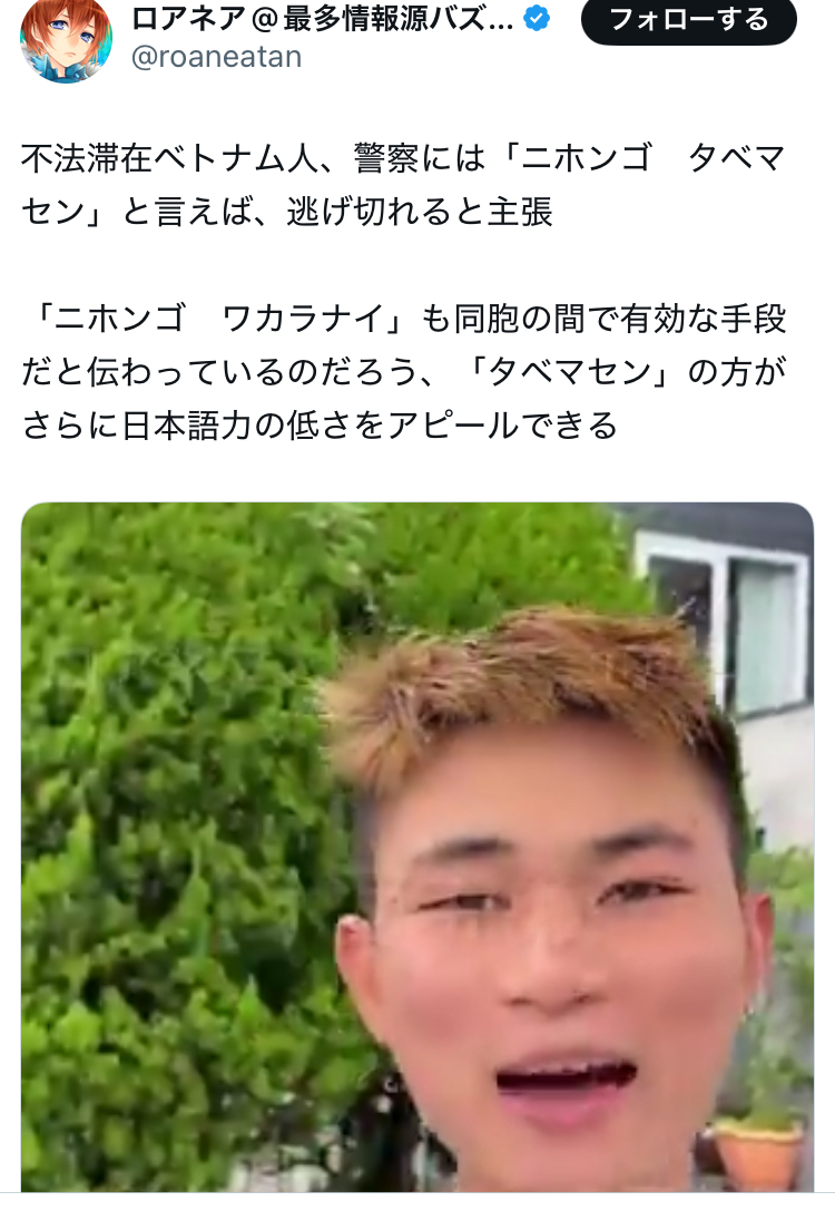 | … | 19無念Nameとしあき26/03/11(水)09:26:34No.1393070426+>いきなり警察が流暢なベトナム語で話してきたらどうすんだろ |