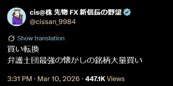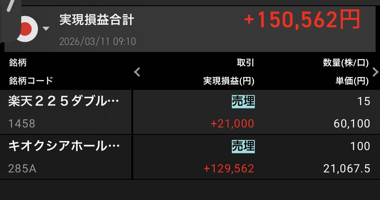 | … | 547無念Nameとしあき26/03/11(水)10:33:22 ID:qrpUOxzgNo.1393078259+アドバンテスト握るもできなかったからもう今日は手仕舞いので |