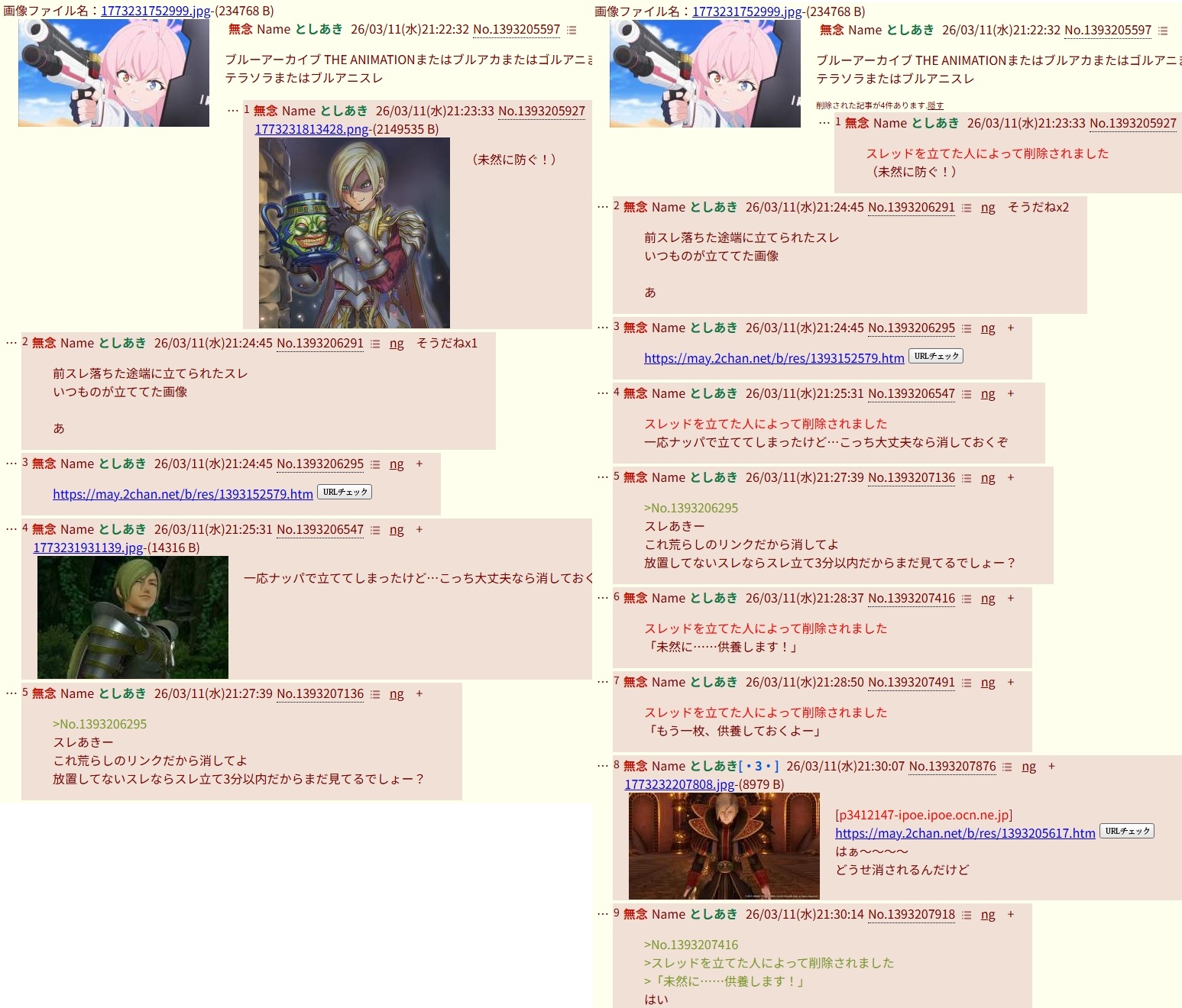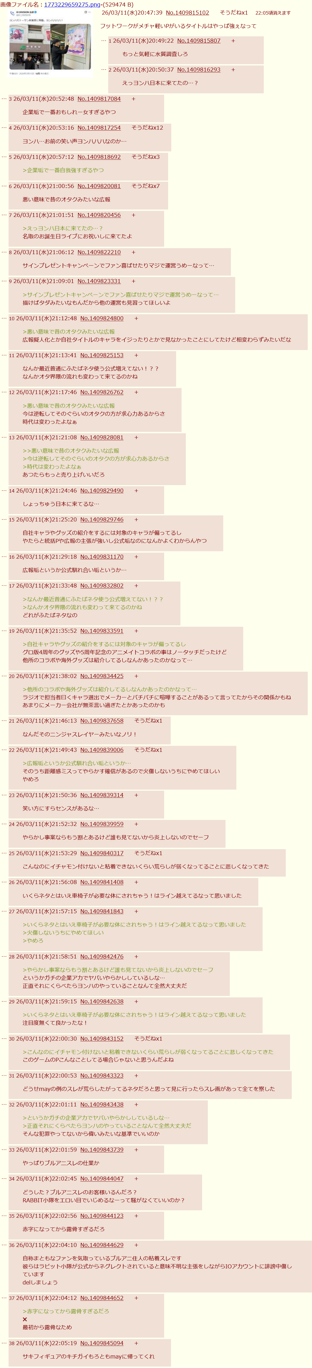 | … | 1無念Nameとしあき26/03/11(水)21:24:32No.1393206239そうだねx4 1773231872990.png-(276787 B) (二つ立ってしまったな…出遅れたがあちらが正常進行するならこちらは消しておくぞ! |