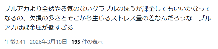 | … | 96無念Nameとしあき26/03/11(水)22:25:34No.1393224261そうだねx2このXだってブルアカ関連のポストはRX前にフォローしてもらう為の踏み台だろうしマジでクソだと思う |