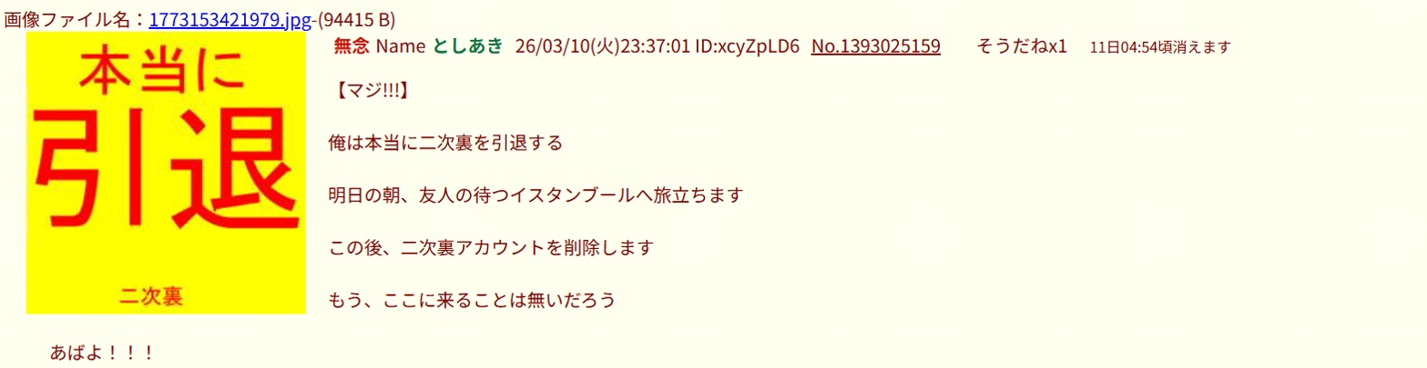 | … | 5無念Nameとしあき26/03/11(水)22:13:38No.1393220839そうだねx1>そうだねx1 |