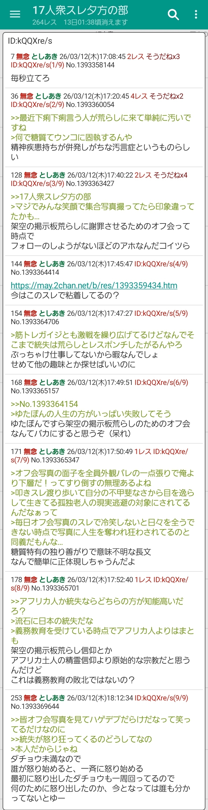 | … | 228無念Nameとしあき26/03/12(木)18:02:15No.1393367550+>そもそも何でオフ会行かなかったんだというその荒らし |
