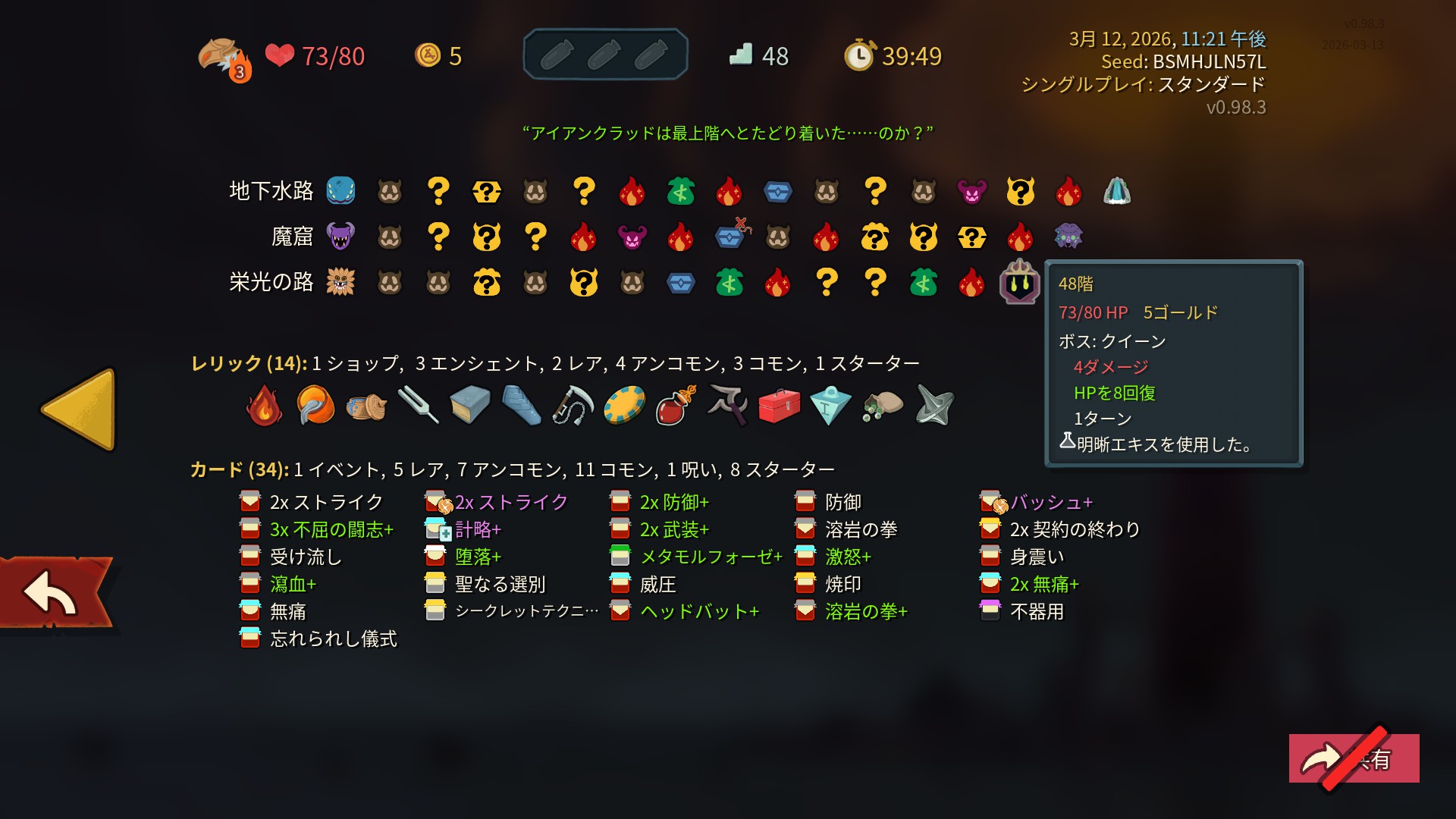 | … | 11無念Nameとしあき26/03/13(金)00:06:52 ID:WdlpxVjoNo.1393454551+3層開始時に悪魔しか出てこないのもうちょいなんとかならんかな…デメリット厳しい選択肢ばかりでわりとストレスだ |