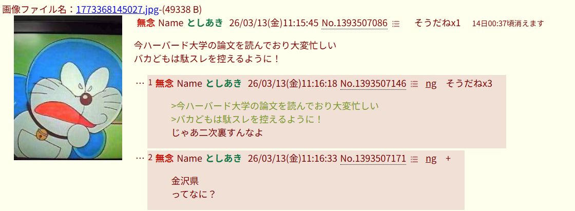 | … | 41無念Nameとしあき26/03/13(金)12:03:26No.1393513325+日本語で話そ |