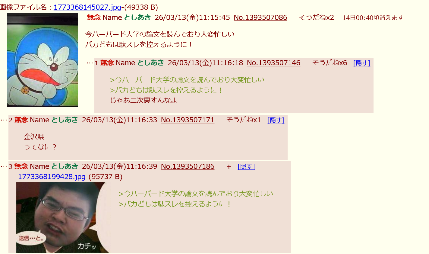 | … | 62無念Nameとしあき26/03/13(金)12:10:03No.1393514461+カキコ? |