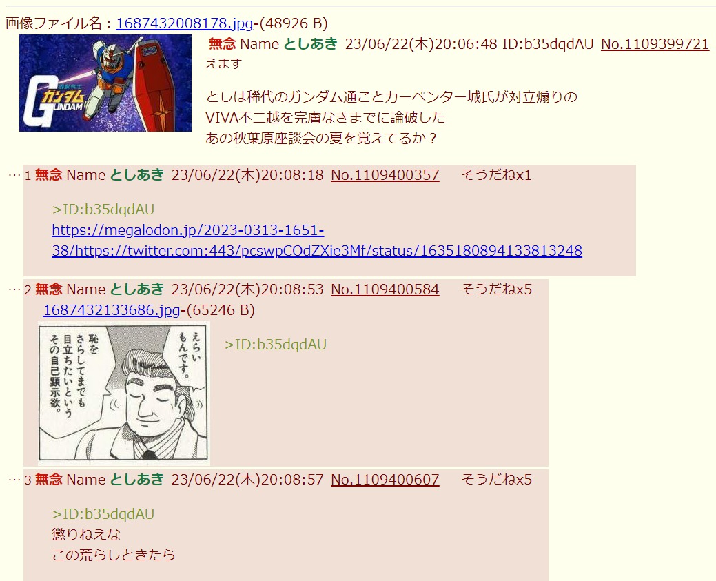 | … | 38無念Nameとしあき26/03/13(金)12:02:54No.1393513241そうだねx1>VIVA不二越はすでにガンダム通の間では繰り返し尽くされた陳腐な論 |