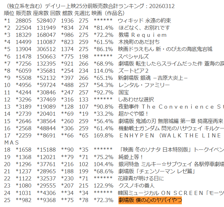 | … | 71無念Nameとしあき26/03/13(金)14:48:40No.1393540082+ 1773380920488.png-(69821 B) スレ画像は映画化なんかしたけど、やっぱり大コケしたな |