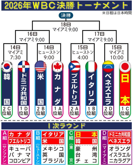 | … | 52無念Nameとしあき26/03/14(土)09:34:53 ID:6MyqWv/sNo.1393702991+>このトーナメント表、日本が勝った場合の準決勝の相手が必ずしもプエルトリコかイタリアって表じゃないんだよな……… |