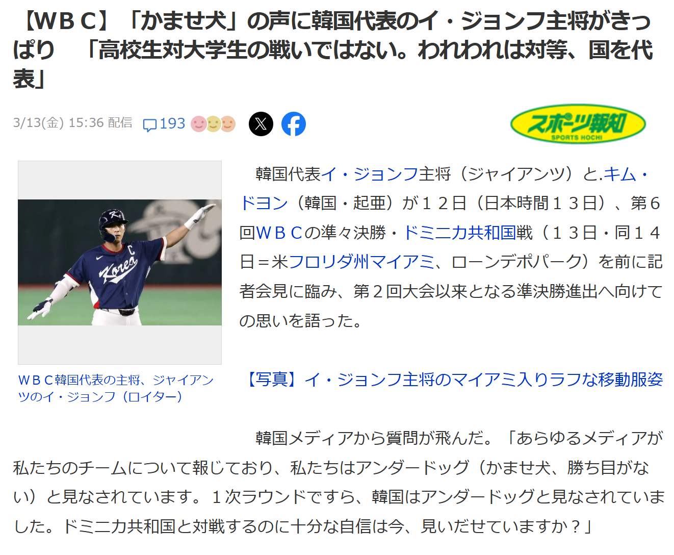 | … | 73無念Nameとしあき26/03/14(土)09:40:07 ID:x2rBBizMNo.1393703839+打線ぶち上がるなら見てみたいが厳しそうだなぁ韓国 |